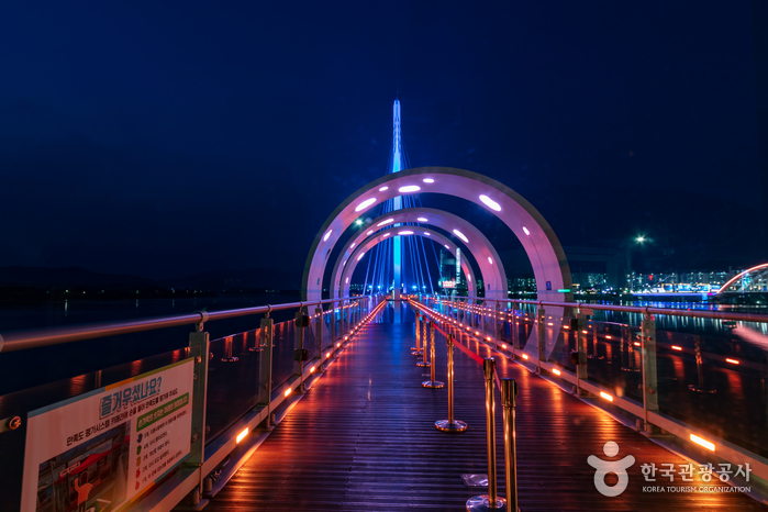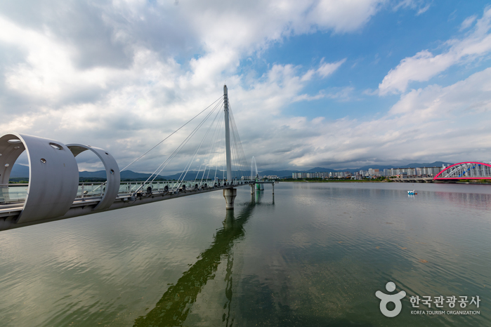 - 교량 끝부분에는 원형 광장과 날개처럼 뻗은 전망대를 설치했다.