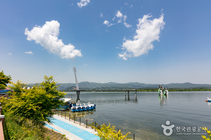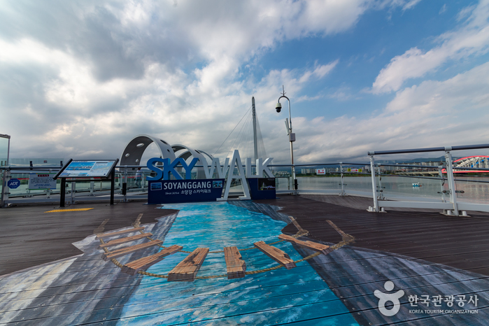 - 소양강스카이워크 입구에는 아기자기한 포토존과 테라스를 마련했고 바로 옆에는 춘천 랜드마크라 불리는 소양2교와 소양강처녀상이 자리한다.