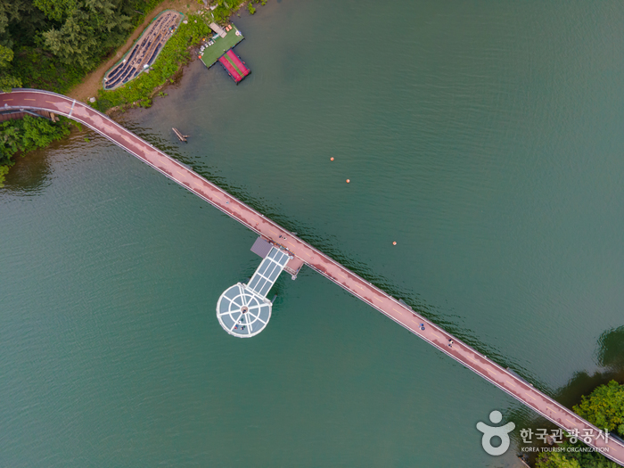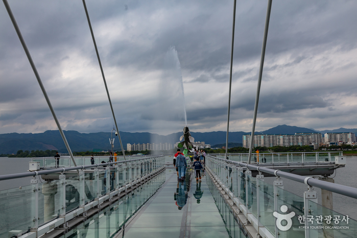- 전 구간의 바닥이 투명 강화유리로 제작돼 물 위를 걷는 듯한 기분을 제대로 만끽할 수 있다.
