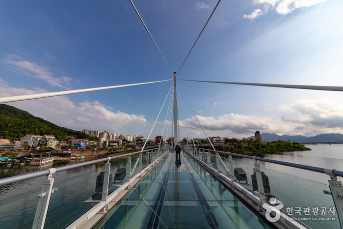 - 강 위로 시원하게 뻗은 소양강스카이워크는 전체 길이가 174m, 그중 바닥이 투명 강화유리로 된 구간이 무려 156m에 이른다.