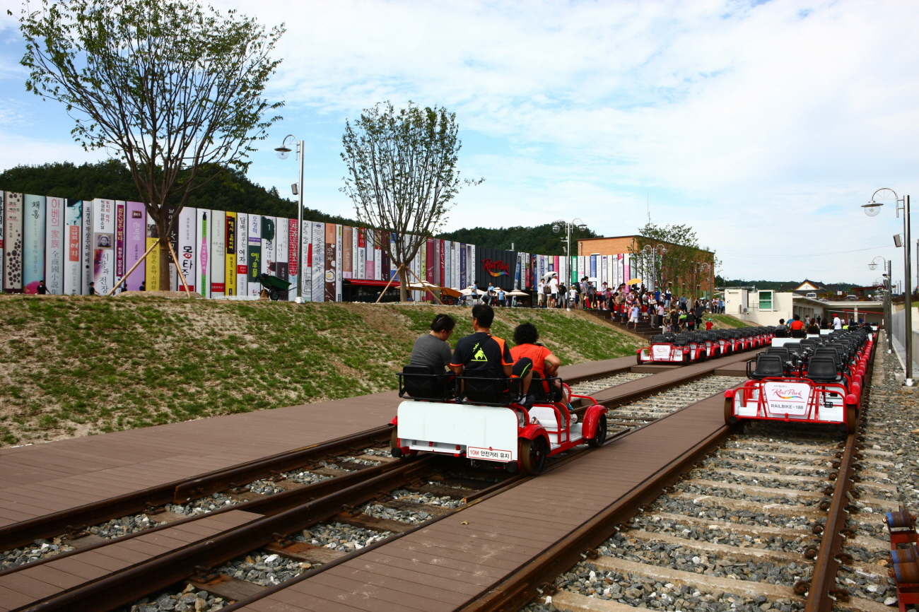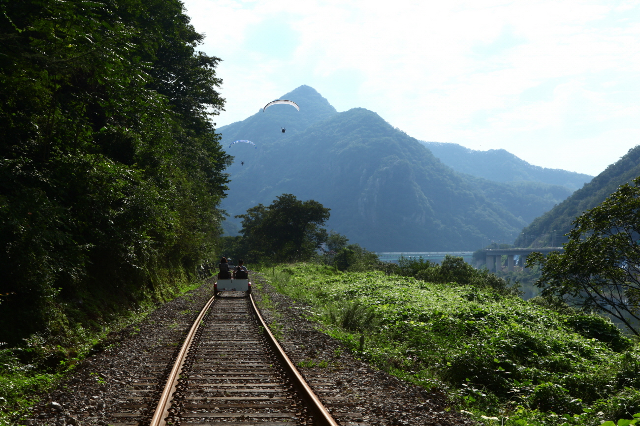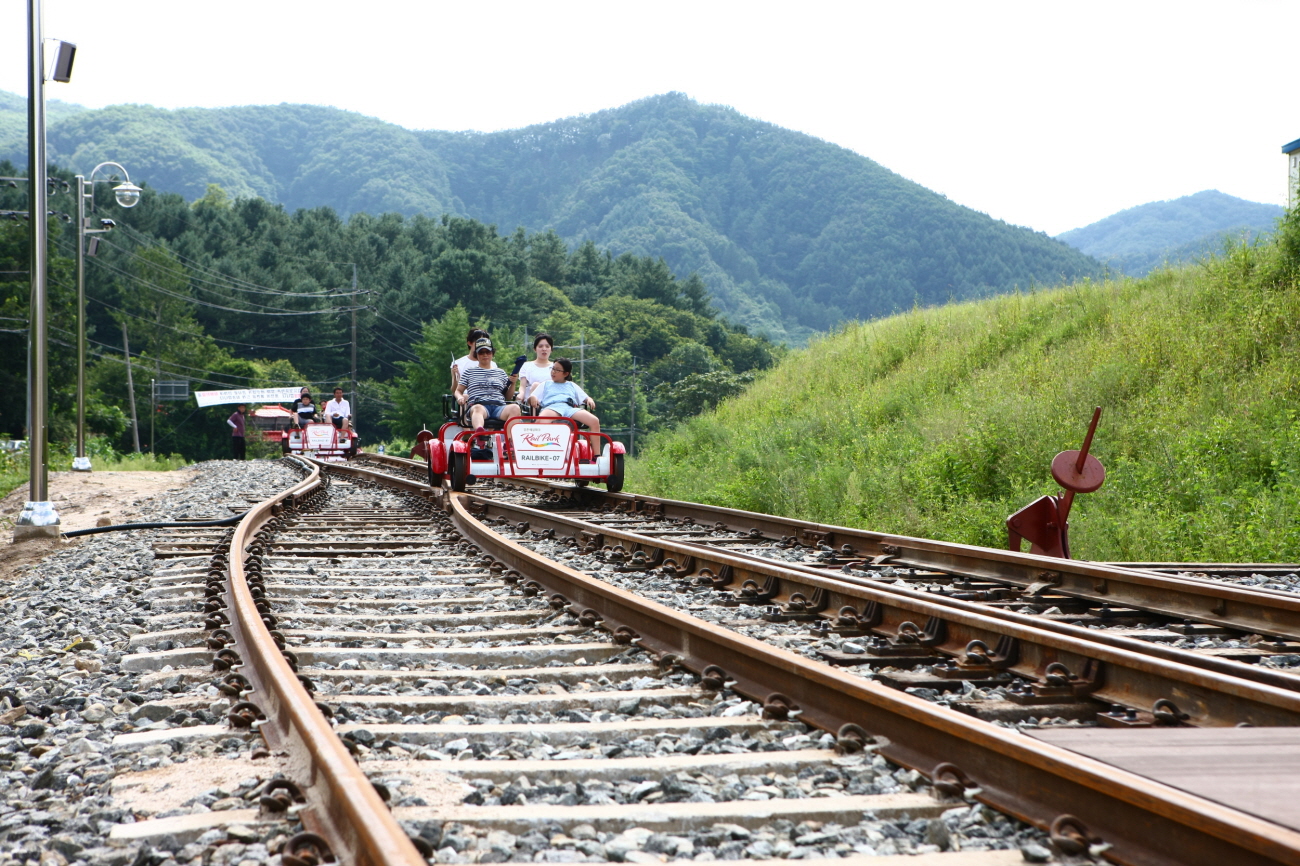 - 목적지에 도착한 후에는 셔틀버스를 타고 탑승장으로 되돌아온다. 경강역에서 출발하는 7.2km 코스의 경강레일바이크도 별도 운영한다.
